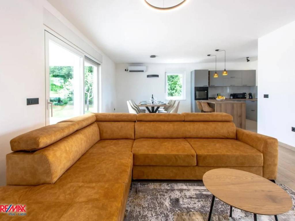 For sale is a modern prefabricated house with a total area of 152 m², built in 2023, located in a peaceful village just 10 km from the center of Labin.