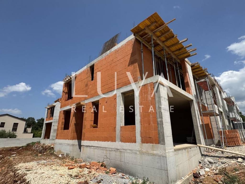 Modern terraced house with pool for sale, total area of 171 m², spread over three floors: ground floor, first floor, and attic. It is located in a quiet neighborhood near Poreč, only 2 kilometers from the sea and the city center, making it a perfect choice for family living or luxury tourist rental.