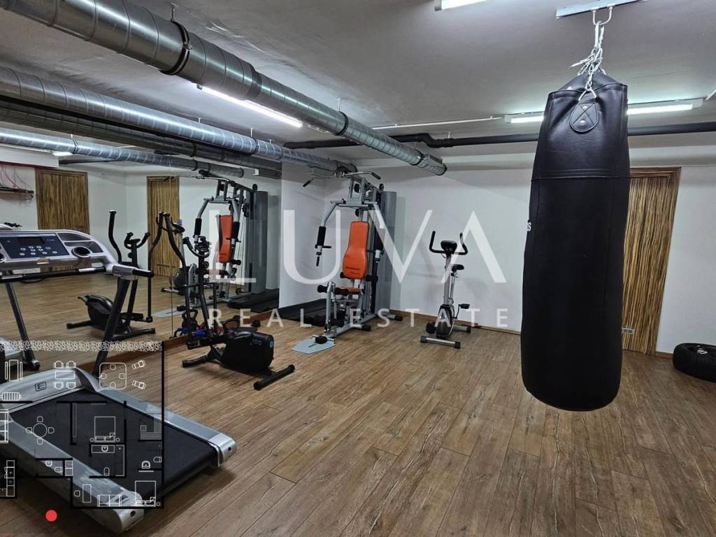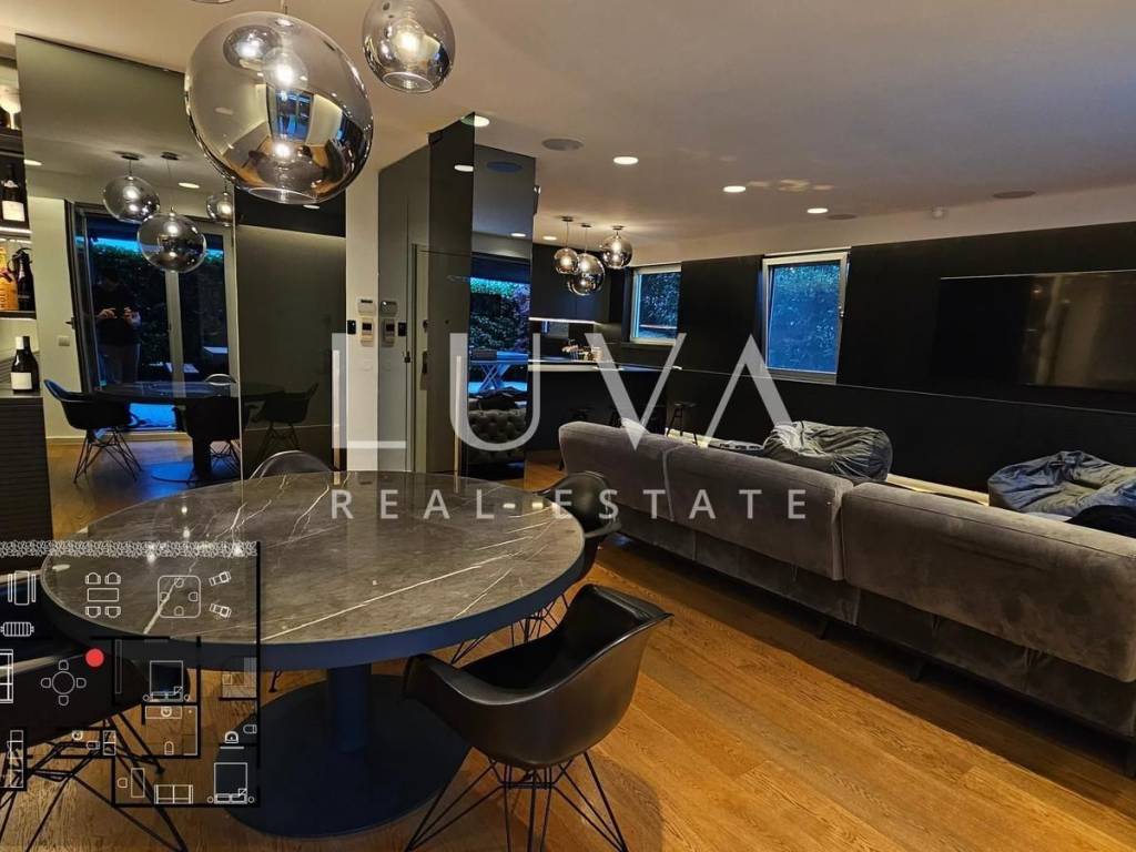 The apartment is fully luxuriously furnished and equipped with high-end systems. Air conditioning in all rooms, hidden radiators, premium audio system in the living room and bedrooms, TVs in every room, as well as the fastest optical internet with the best routers. The property also includes a garage for two cars, two additional outdoor parking spaces, and a 10 m² basement.