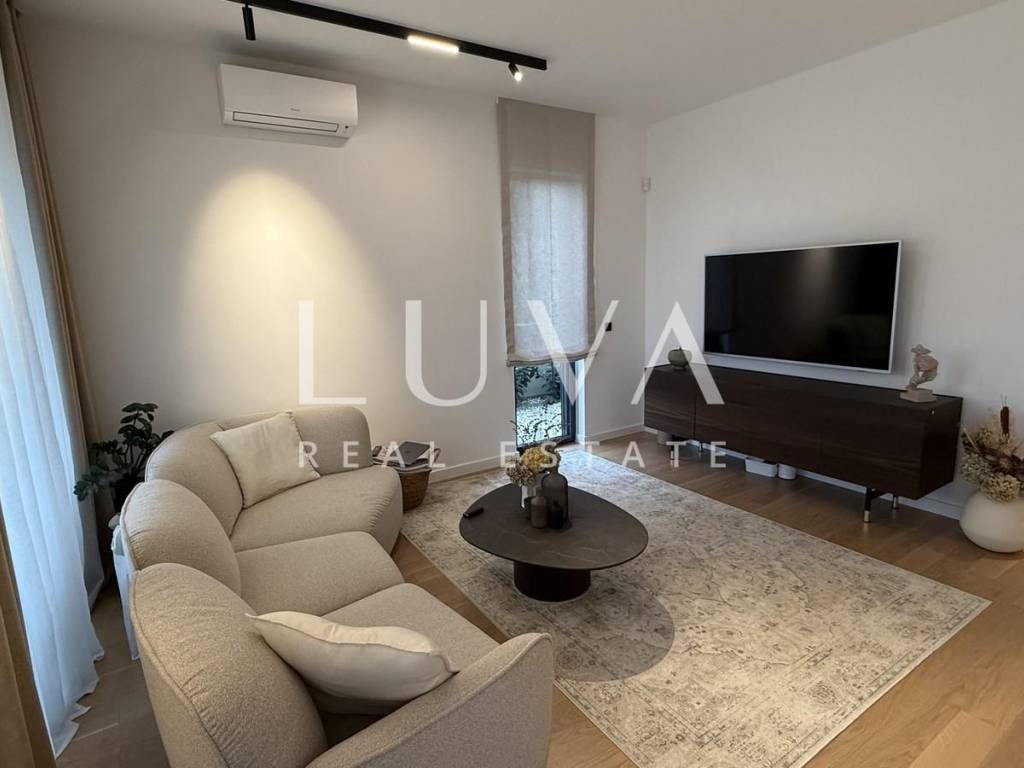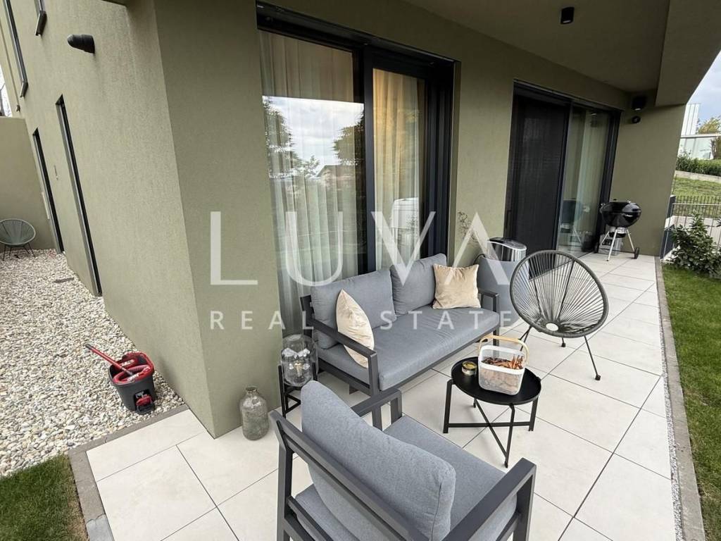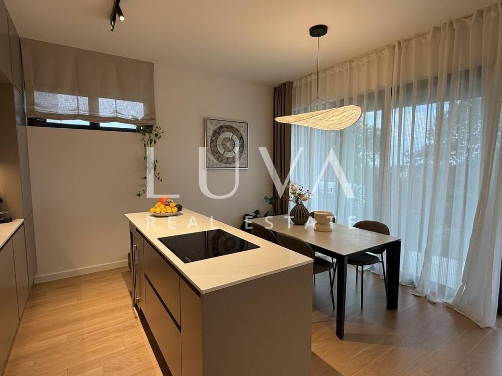 A brand new, modernly furnished apartment of 60 m² is available for rent, located in an excellent area. The apartment consists of a hallway, one bedroom, a kitchen with an island and dining area, a living room, a bathroom, and a terrace with a garden.