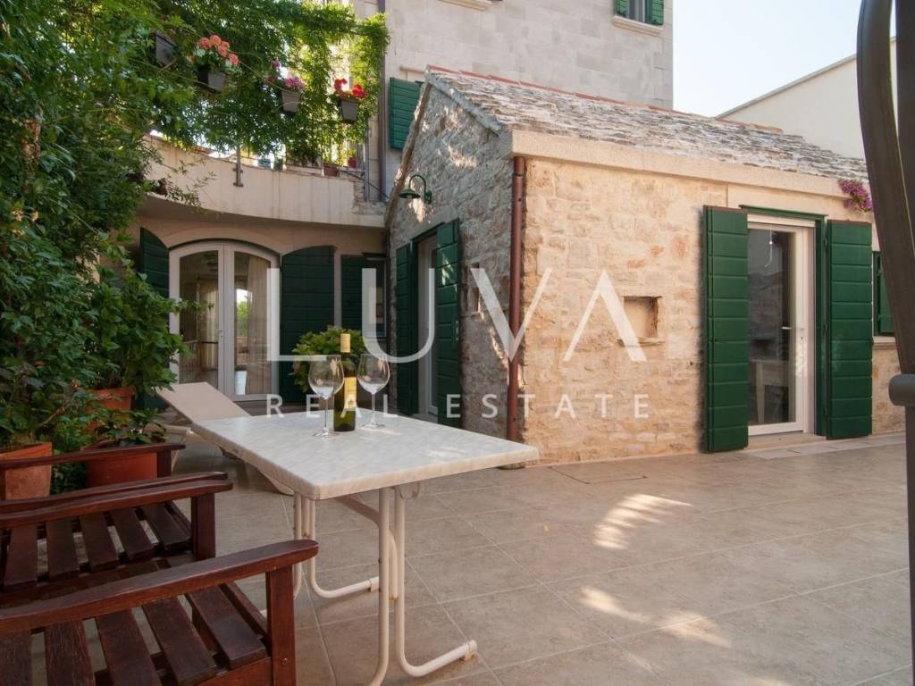 An elegant and modernly furnished house with a pool is for sale, located in the small and quiet village of Mirca on the island of Brač. Just a few minutes’ walk from the sea, this villa offers the perfect blend of privacy, comfort, and Mediterranean charm. Built in 2011, the house spans three levels with a total living area of 230 m², while the entire plot measures 250 m².