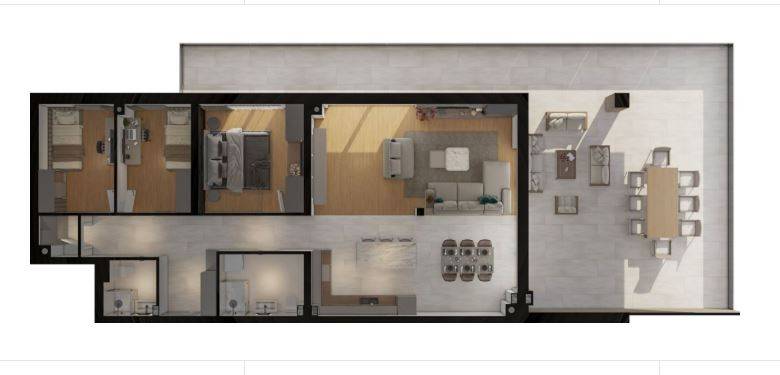 Ovaj funkcionalan i konforan stan sastoji se od ulaznog hodnika, kuhinje sa blagovaonicom, ostave, 2 kupaonice, dnevnog boravka, 3 spavaće sobe, prostrane terase i loggie.