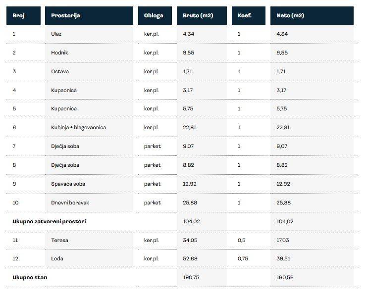Predstavljamo Vam ponudu četverosobnog stana br.34 na 3 katu, netto površine 160.56m2.