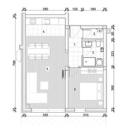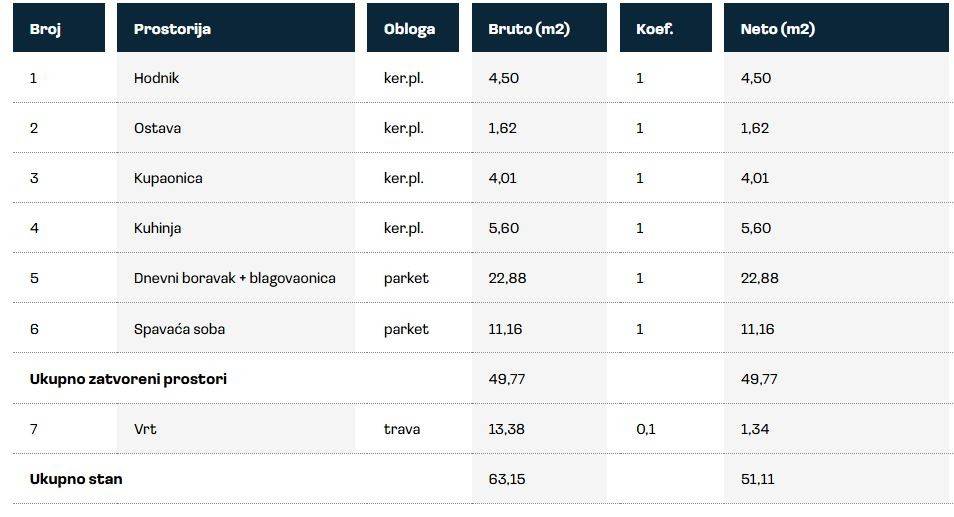 Predstavljamo Vam ponudu dvosobnog stana br.01 u prizemlju, netto površine 49.77m2.