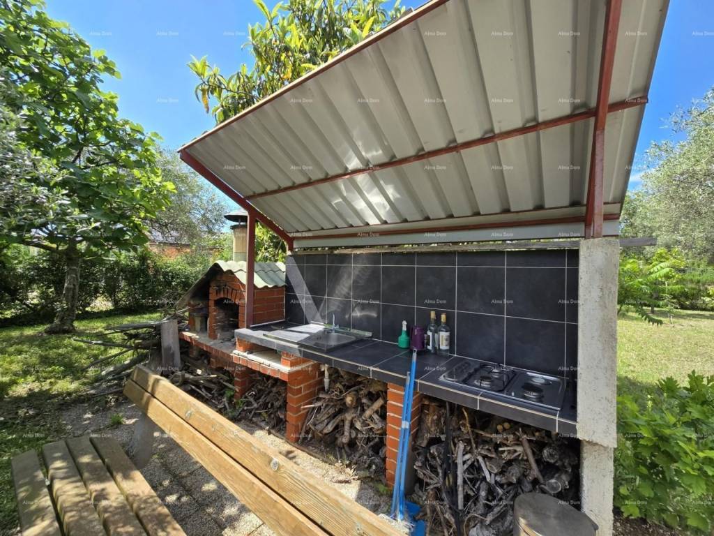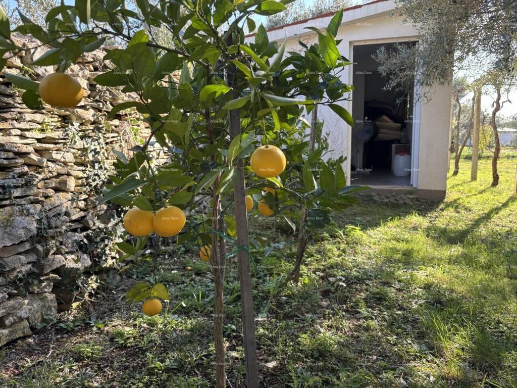 This charming weekend cottage in Fažana is the perfect opportunity to escape the hustle and bustle of the city. With an area of 37 m², it offers two bedrooms, a living room, and a bathroom. Situated on a spacious plot of 1375 m², it provides plenty of space for relaxation and enjoyment of nature. Located just 3000 m from the sea, it is ideal for all beach lovers. Equipped with solar panels, this house offers a sustainable way of living. Municipal water supply. Take the opportunity to create your own peaceful corner close to all the amenities that Peroj has to offer. Parking available for multiple cars. +385 91 611 5706 azra@almadominvest.com +385 98 323264 jelena@alma-nekretnine.com