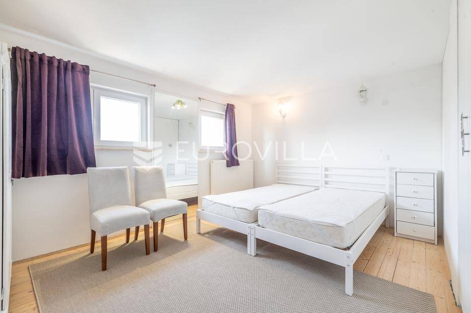 Velika Gorica, u mirnoj i traženoj Kurilovečkoj ulici, iznajmljuje se dvoetažni trosobni stan ukupne površine 62,83 m², smješten na 1. katu i potkrovlju manje stambene zgrade.Donja etaža: ulazni hodnik, kupaonica, kuhinja te dnevni boravak i blagovaonica otvorenog tlocrta s izlazom na loggiu.Gornja etaža: dvije komforne spavaće sobe, što stan čini idealnim za obitelj ili par koji želi dodatnu prostoriju za rad ili goste.Stan je funkcionalnog rasporeda, ispunjen prirodnim svjetlom tijekom dana. Potpuno je opremljen osnovnim kućanskim aparatima koji su potrebni za kvalitetan život kao što su: Perilica i sušilica za rublje, perilica za suđe, pećnica, TV, itd..Grijanje je plinsko etažno, na donjoj etaži je podno grijanje, stan je klimatiziran.Uz najam stana je uključeno u cijenu i jedno vanjsko parkirno mjesto.Odlična mikrolokacija u Velikoj Gorici - mirna ulica u blizini svih važnih sadržaja: vrtići, sport, trgovine, javni prijevoz i glavne prometnice. Svega 700 metara od osnovne škole i 500 metara od glazbene škole.Ostale informacije na upit.