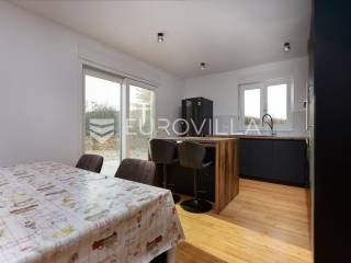 Otkrijte svoj savršeni dom - modernu niskoenergetsku montažnu kuću s A+ energetskim certifikatom i 28 godina garancije na konstrukciju.Unutrašnjost je prostrana, svijetla i udobna - sastoji se od 4 prostrane spavaće sobe, uključujući glavnu spavaću sobu s walk-in ormarom izrađenim po mjeri i natkrivenim balkonom za jutarnju kavu uz pogled, tehničkom sobom, 2 elegantne kupaonice (s električnim podnim grijanjem), open space dnevnim boravkom, sunčanom kuhinjom i blagovaonicom, te 2 terase (natkrivena za kišne dane, nenatkrivena za sunčane trenutke).Za komfor na svakom koraku, tu je klima uređaj u svakoj sobi i mogućnost grijanja na drva ili pelete (dimnjak je već tu).Kuća je potpuno opremljena - uključuje hladnjak, perilicu suđa, indukcijsku ploču, pećnicu, perilicu i sušilicu rublja.Nalazi se na terenu od 828 m² s dovoljno prostora za bazen, garažu i pomoćni objekt, gdje možete sami stvoriti Vaše dvorište iz snova.Kontaktirajte nas za više informacija i razgled.