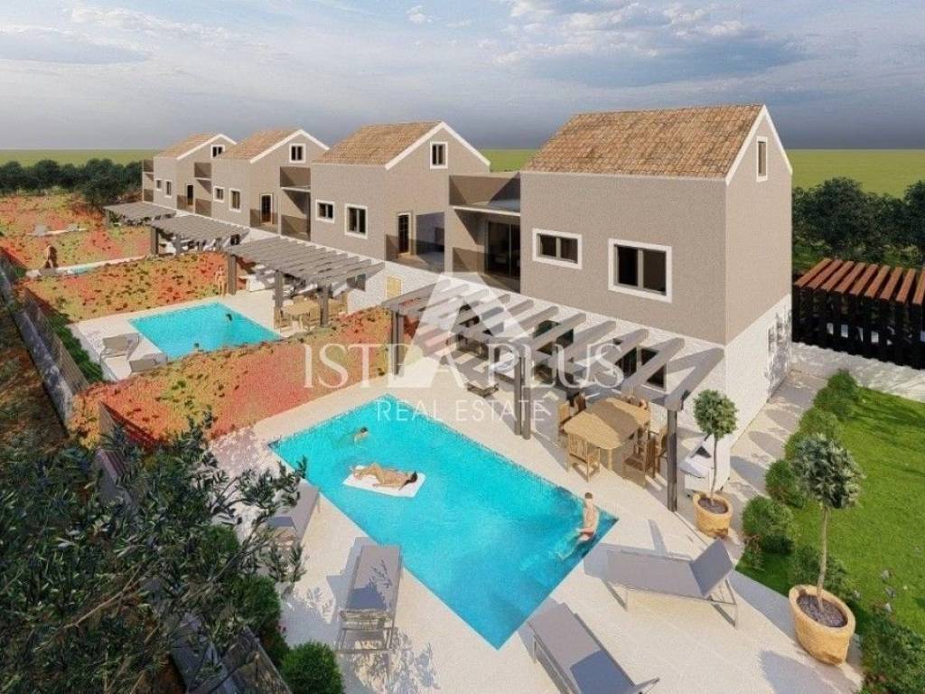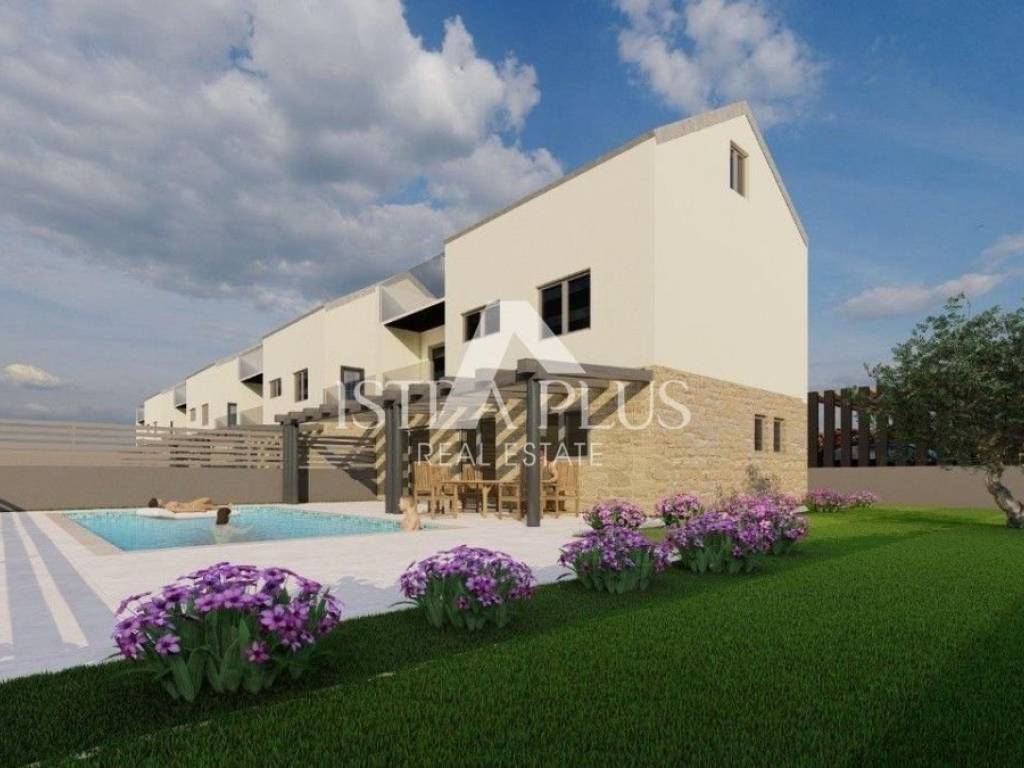 K28NEW HOUSES WITH SWIMMING POOL AROUND POREČNew family houses with a swimming pool are located in the vicinity of Poreč approx. 11 km from the sea.4 houses will be built with an attached yard; external approx. 500m2, internal approx. 400m2The ground floor contains: entrance porch, hall, toilet, storage room, pantry. Open-concept kitchen followed by dining room and living room with exits to a terrace with a canopy and a landscaped yard with a pool (8x4, if desired, the pool can be additionally covered as shown in the pictures in the ad).Additional storage 7.49m2 on the outside (contains all houses except house D)On the 1st floor there is an entrance hall and three bedrooms, one with a loggia, and one with its own bathroom and terrace.Practically used high attic where there is a dressing room, a bathroom and a room of 24.15 m2 that can be a bedroom and/or a fitness room, a relaxation area, a study room, a playroom and the like. It leads to a large terrace with a view of the landscape, where a jacuzzi can be positioned as desired.Exterior house A = price: €490,000 + €30,000 FOR THE SWIMMING POOL IF THE BUYER WANTS ITInternal B and C = price: €470,000 + €30,000 FOR THE POOL IF THE BUYER WANTS IT-- Each property has 3 parking spaces- Underfloor heating with a heat pump is planned- The possibility of a saltwater swimming pool- The possibility of covering the pool- The houses are sold according to the turnkey systemHOUSE B and C surfaces:Closed area: 151.22 m2Open space: 37.38m2TOTAL: 188.6 M2HOUSE A area:Closed space: 143.73 m2Open space: 26.86 m2TOTAL: 170.59 M2