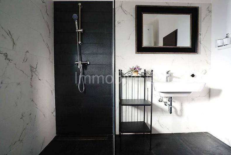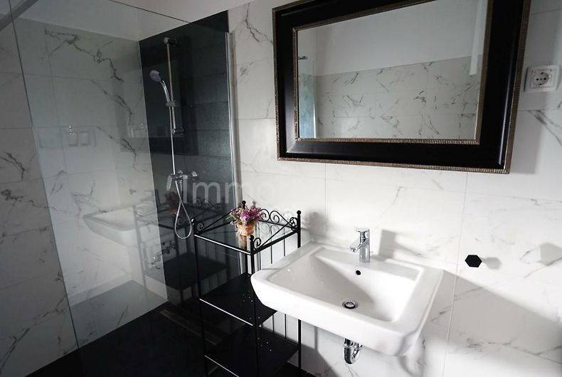 The upstairs apartment consists of a hallway, living room, kitchen and dining room, 3 bedrooms, 2 bathrooms and a large terrace.