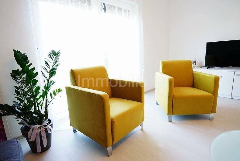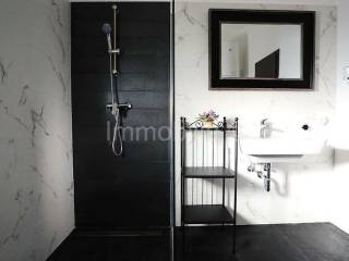 Die Wohnung im Obergeschoss besteht aus Flur, Wohnzimmer, Küche und Esszimmer, 3 Schlafzimmern, 2 Bädern und einer großen Terrasse.