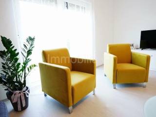 L'appartamento al piano superiore è composto da un corridoio, soggiorno, cucina e sala da pranzo, 3 camere da letto, 2 bagni e un ampio terrazzo.