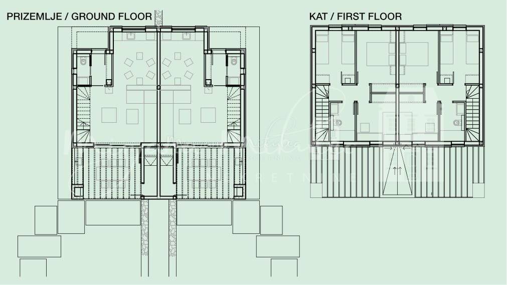 Svaki stan je veličine 92 m2 netto površine ( cca 97 m2 brutto površine). Svakom stanu pripada i okućnica od 230 m2.
