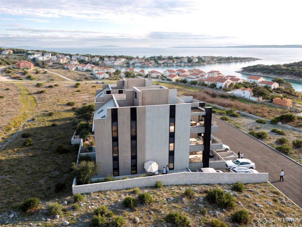 Nestled in the charming fishing village of Šimuni on Pag Island, this exclusive modern development consists of two elegant buildings with a total of 12 luxurious residential units. This intimate and rare location, surrounded by pine forests, creates a true oasis of peace and greenery on an otherwise rocky island.