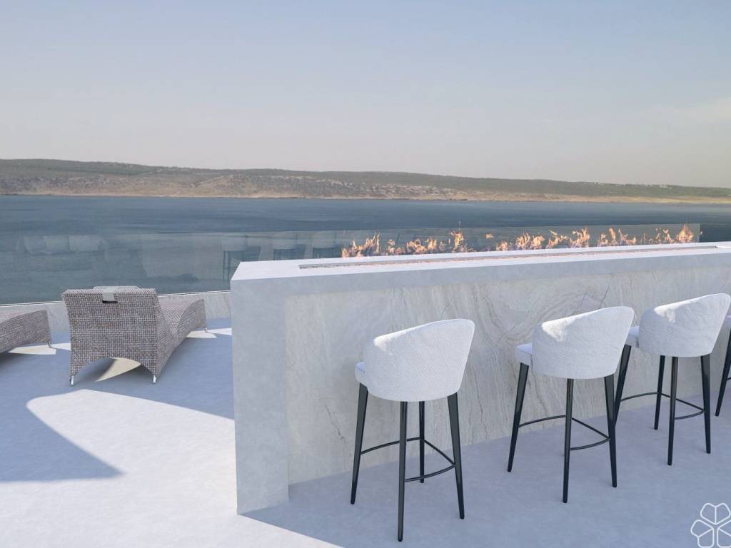 Special attention has been given to the villa's exterior, which includes an infinity pool of 63 m with a waterfall effect inspired by the Paklenica waterfalls. The spacious terrace features an open-air cinema, hydromassage pool, and two lounge areas equipped with a fireplace and grill, ideal for relaxation and entertainment throughout the year.