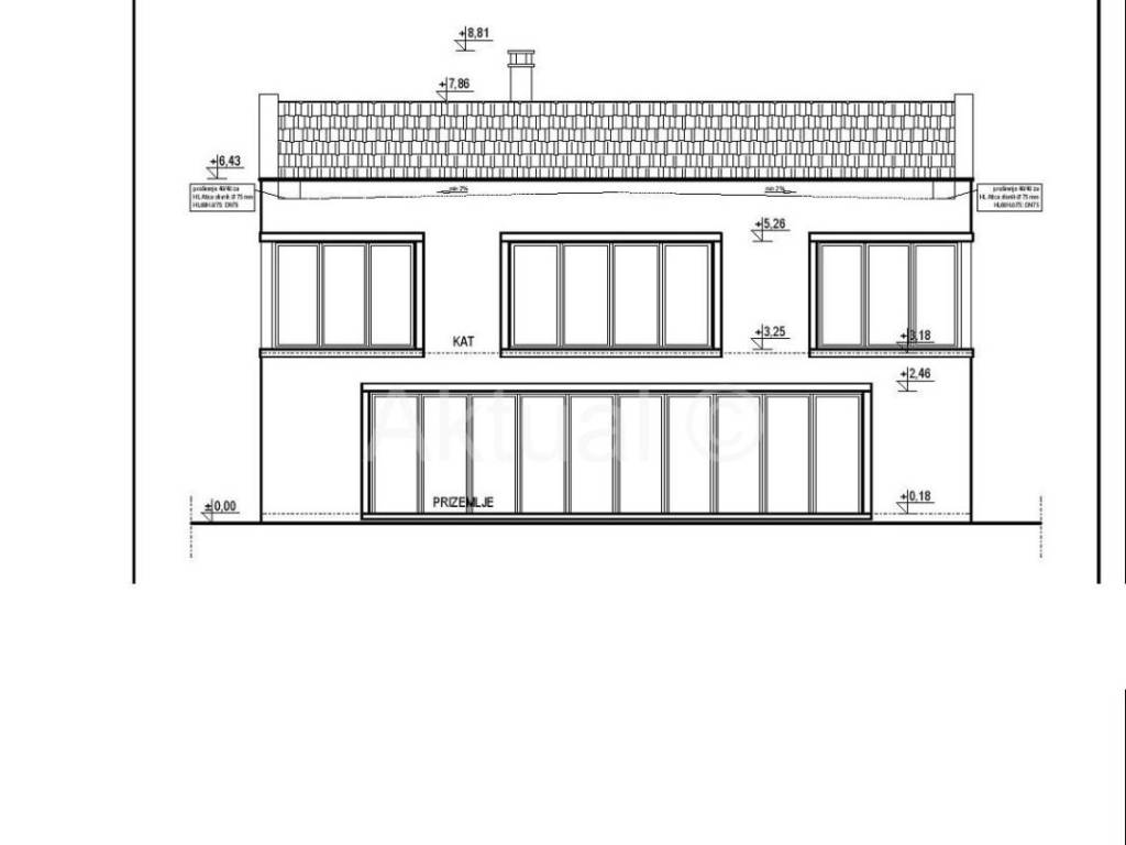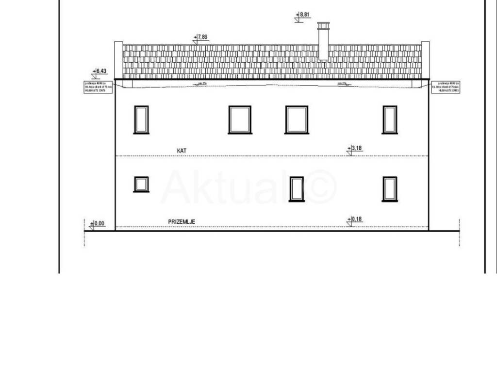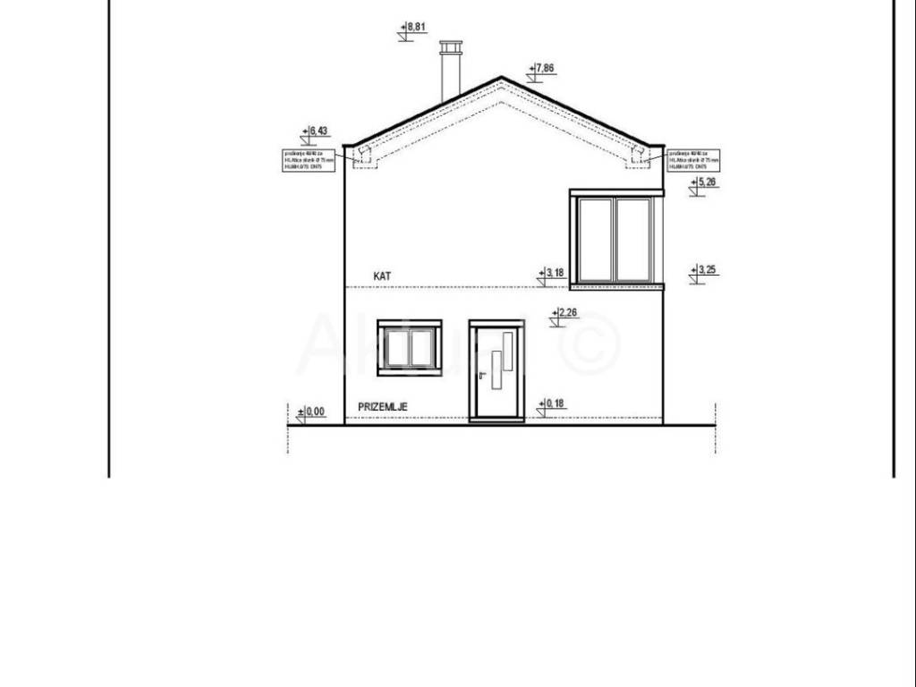 Napravljen je novi projekt u cijelosti; plaćene su sve pristojbe za projekt struje, statike i sveg ostalog što je potrebno. Dobivena je kompletna građevinska dozvola koja je postala pravomoćna za kuću ukupne površine 210 m2 (30m2 podrum, 90m2 prizemlje + 90m2 kat). Moguće je samo mijenjati unutarnji raspored, obzirom na vrijednost i starost kuće ona po prostornome planu treba biti napravljena u kamenu. Po projektu je to kuća za 6 do 8 ljudi. Projekt je napravio poznati splitski arhitekt koji će projekt voditi do kraja.