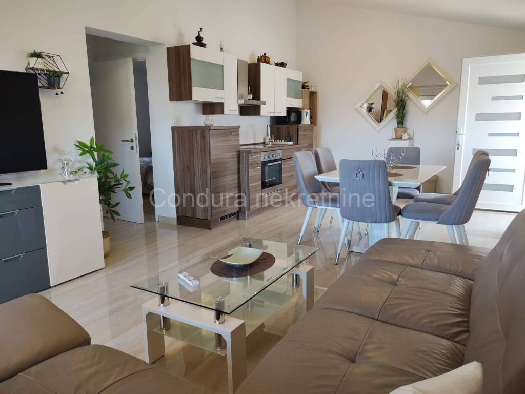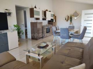 For sale is a spacious two-bedroom apartment on the first floor of a new building with a total of four residential units, in the very center of the island of Vir.