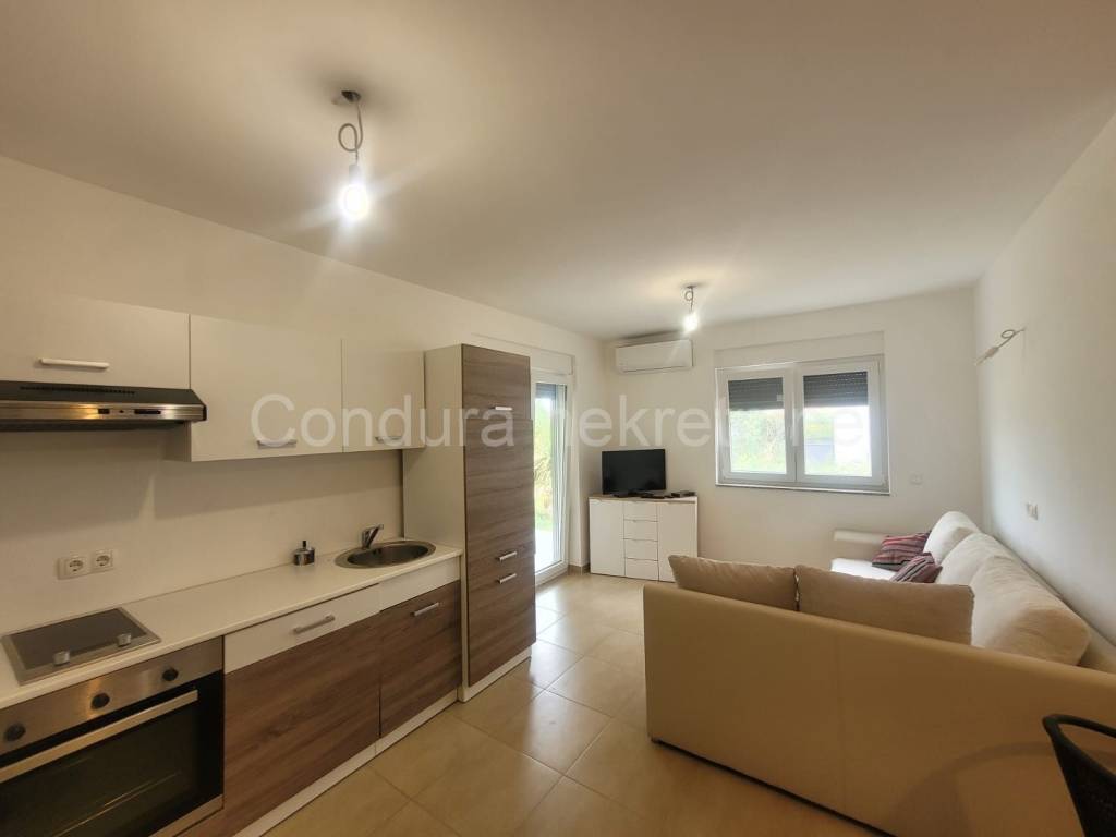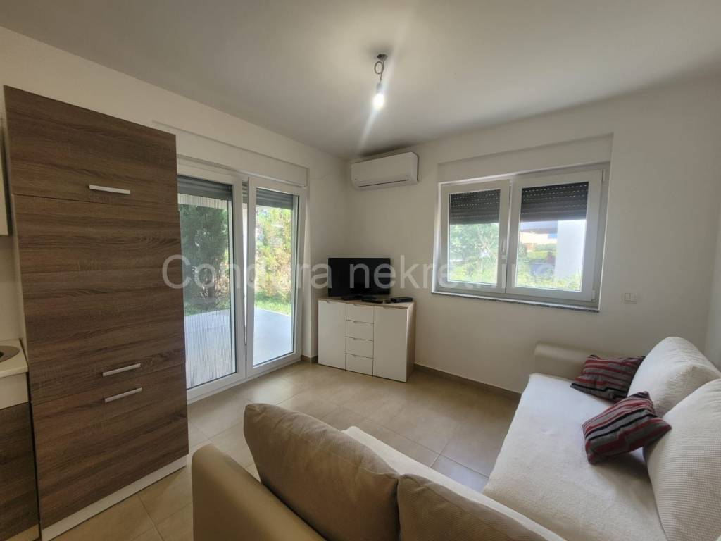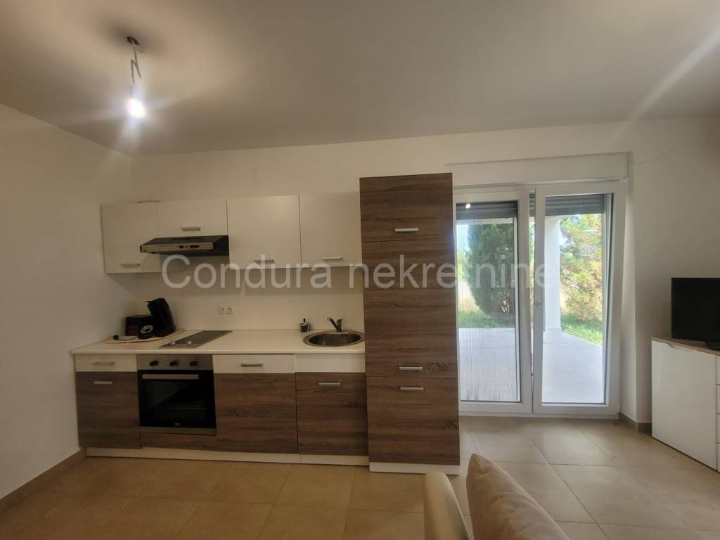 Nin For sale: a fully furnished, beautiful two-bedroom apartment with a garden, located on the ground floor of a residential building, just 180 meters from the sea.