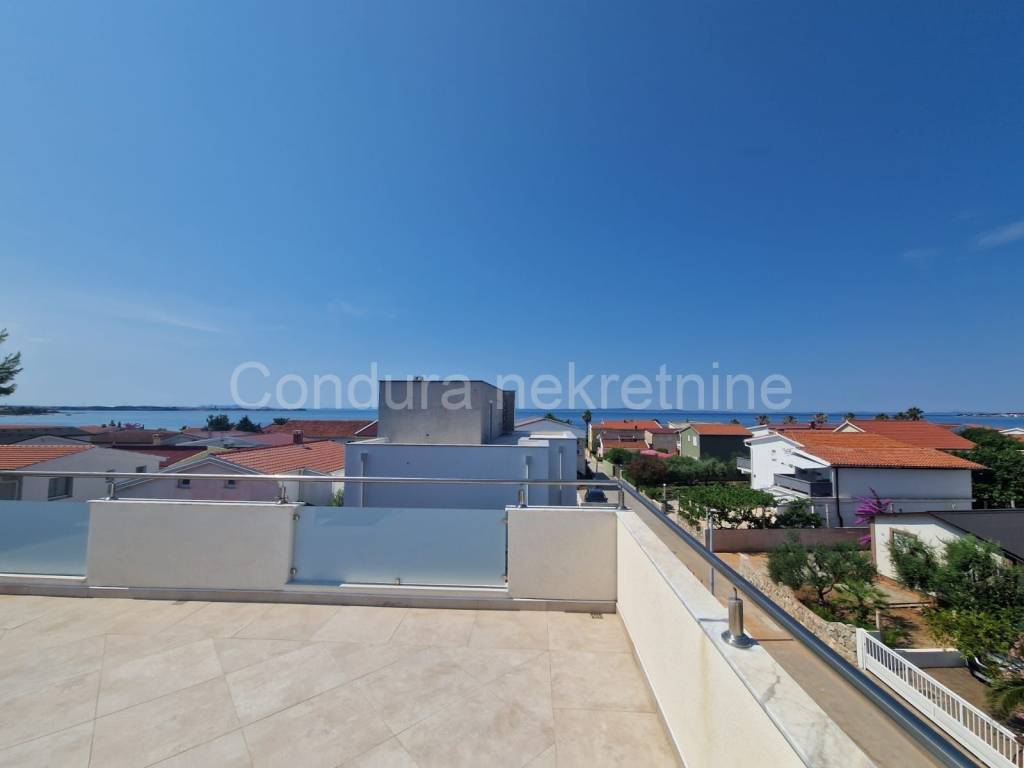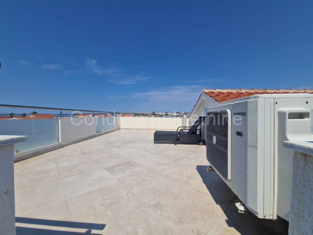 It consists of a basement, ground floor, first floor and a roof terrace with a beautiful open view of the sea and islands. On the ground floor and first floor there are a total of 4 apartments (two on each floor). Each apartment has a net area of 39 m2 and consists of one bedroom, bathroom, kitchen with living room and a covered terrace. All apartments have a separate private entrance from the yard or external staircase.