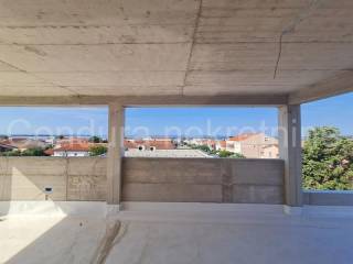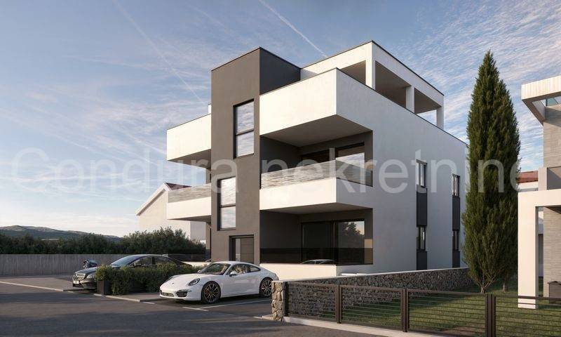 Each apartmenthas an area of 88,21m2 and consists of a hallway, two bedrooms, a bathroom, a laundry room, a living room with a kitchen and a dining room, and a covered terrace. It comes with two parking spaces in the courtyard in front of the building andpartially covered terrace of66,35 m2.