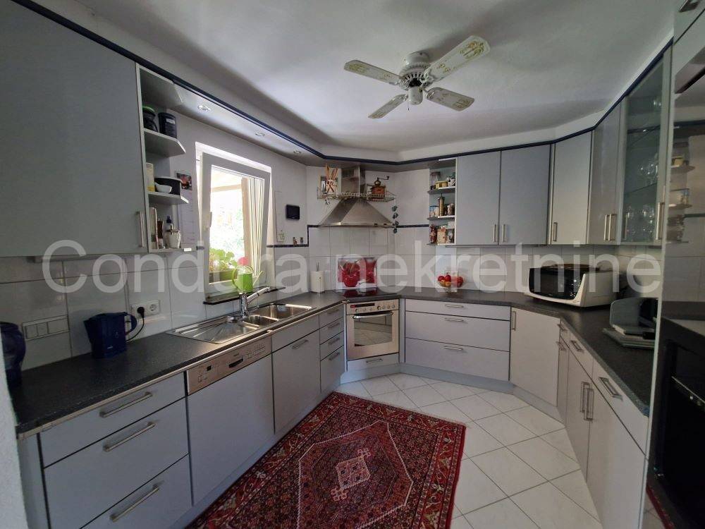 On a plot of 785 m2 there is a beautiful house with a landscaped and well-kept Mediterranean garden and a garage with a summer kitchen and bathroom.