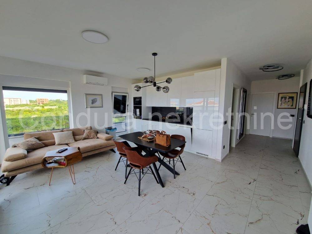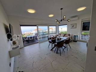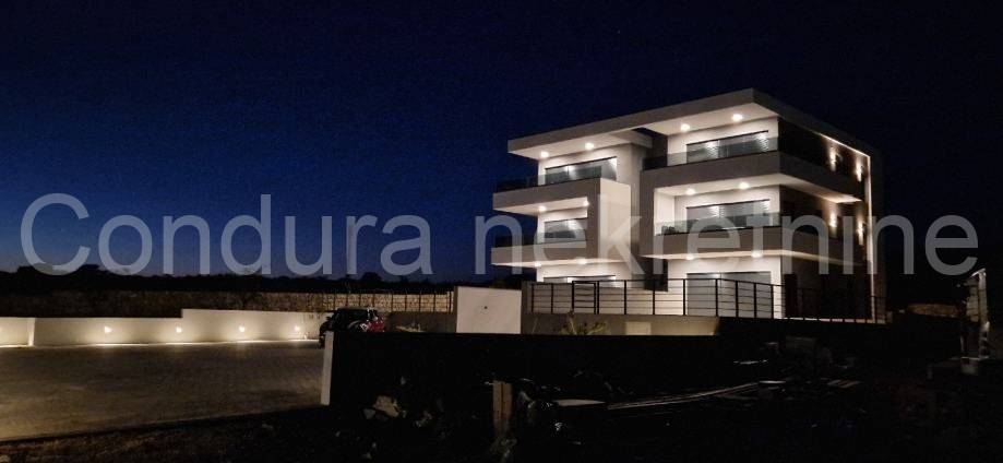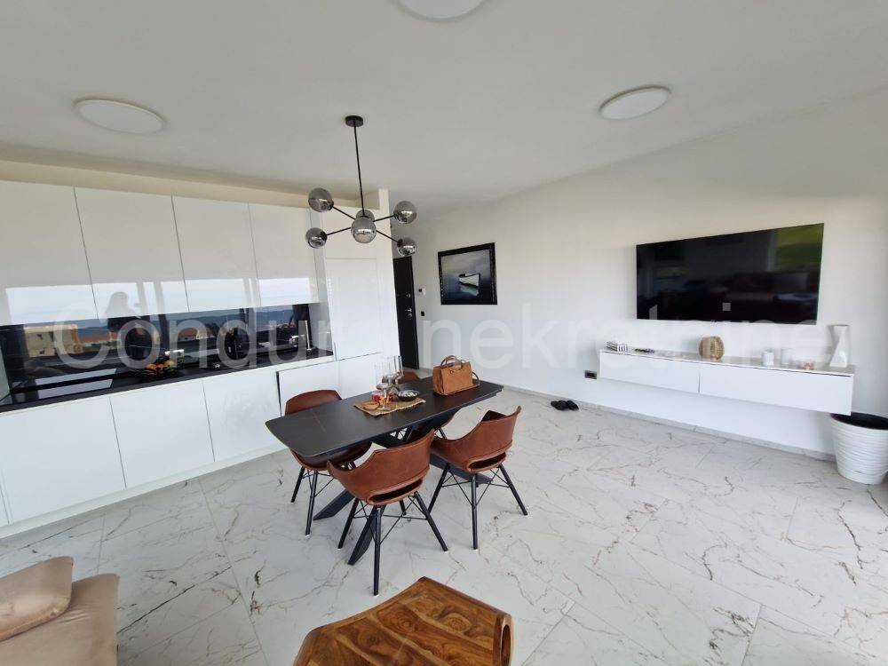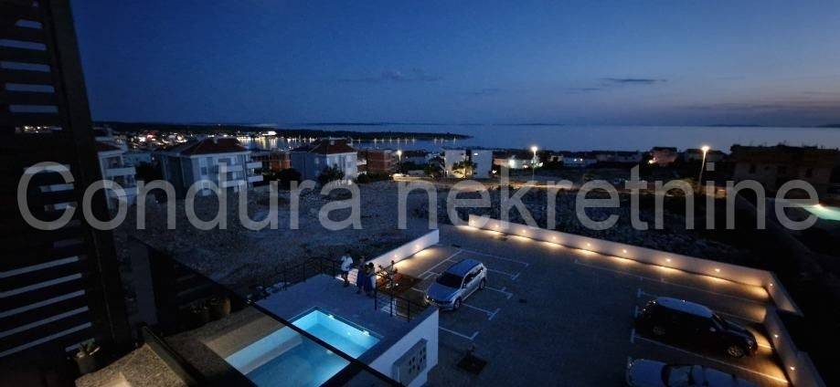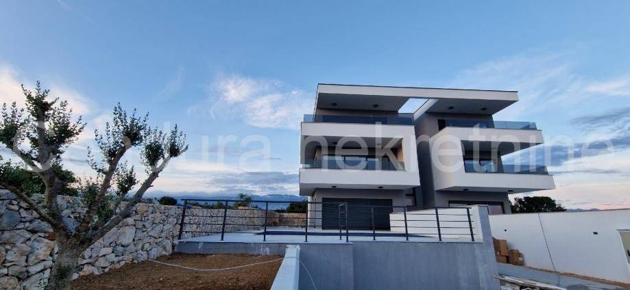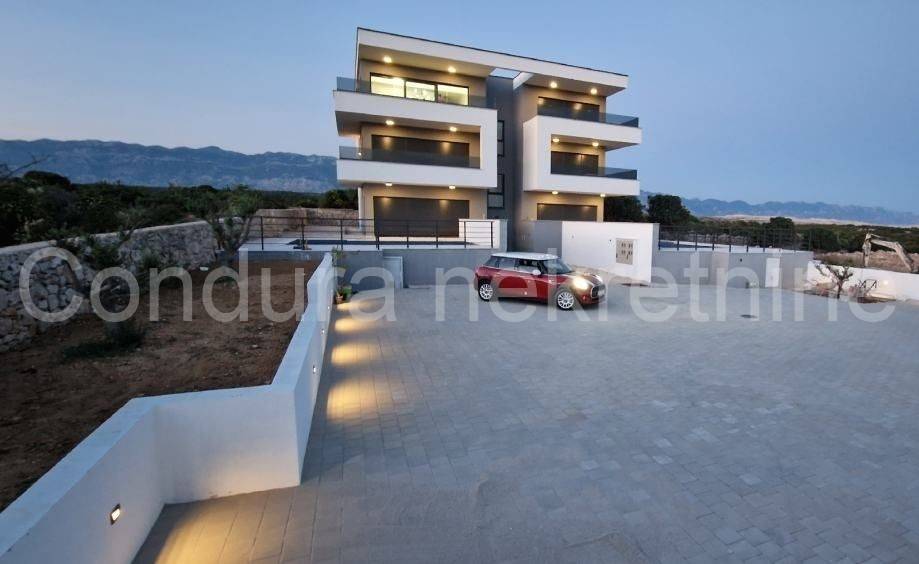 Luxurious three-room apartment with a panoramic view of the city and the sea. The apartment is located on the second floor of a luxury residential building with a total of six units. It is located in the immediate vicinity of the center of Novalja and the beach. With a total area of 92 m2, this apartment consists of: 3 bedrooms open space kitchen with living room and dining room covered terrace bathroom toilet