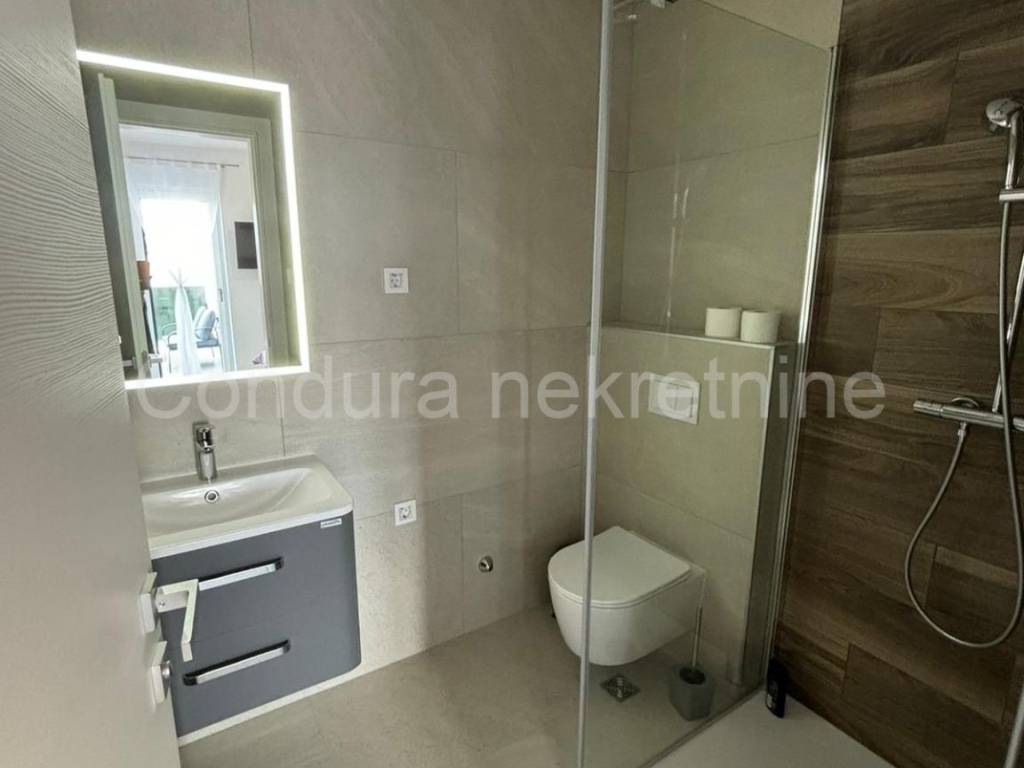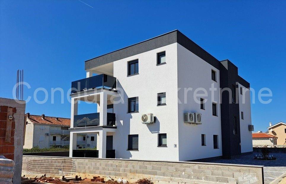 Privlaka - in a newly built building, there is a fully furnished penthouse for sale on the 2nd floor of the building, which extends over the entire floor. It is located only 350 m from the sea and the beach, and from both balconies and from the living room there is a view of the sea.