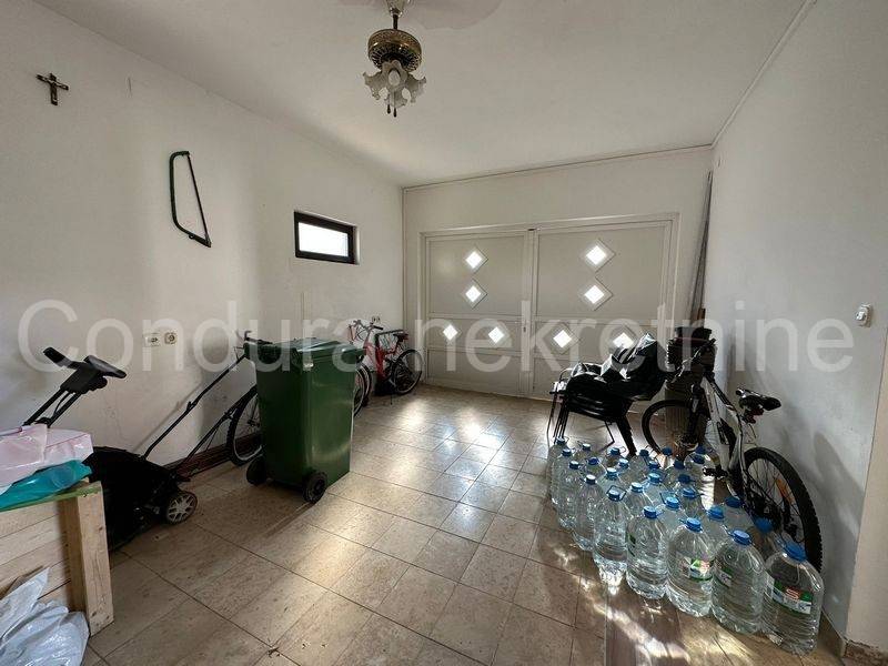 Sa stražnje strane se nalazi garaža te djelomično renoviran apartman sa dvije spavaće sobe, kupaonicom i prostranim dnevnim boravkom sa kuhinjom.