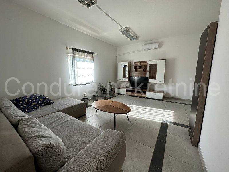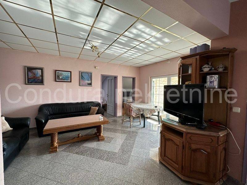 Odvojenim hodnikom se dolazi u stambeni dio, na prvom katu su dva stana. Prvi je skroz renoviran i sastoji se od kupaone, kuhinje sa dnevnim boravkom, dvije spavaće sobe iz kojih se izlazi na natkrivenu terasu.