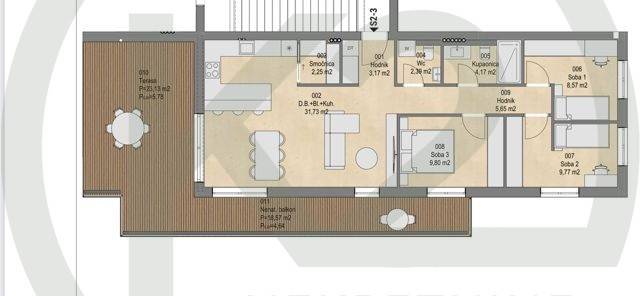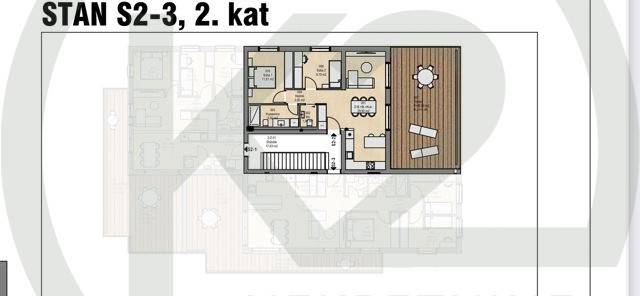 Prodaje se 4- sobni stan u novogradnji S2-3 na 2. katu, korisne površine 119,20 m2, obračunske površine 87,92 m2, nekoliko minuta od Jankomira.