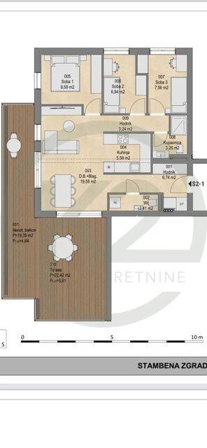 Prodaje se 4- sobni stan u novogradnji S2-1 na 2. katu, korisne površine 106,68 m2, obračunske površine 75,36 m2, nekoliko minuta od Jankomira.
