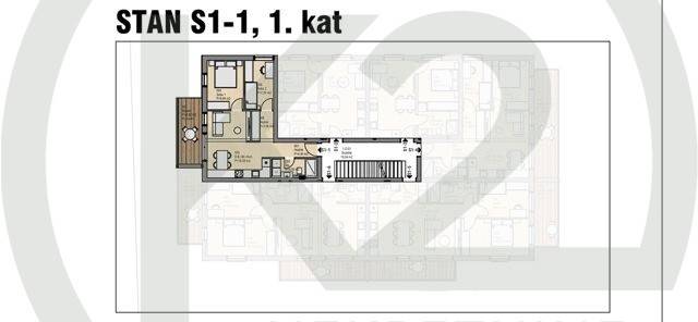 Prodaje se 3 - sobni stan u novogradnji S1-1 na 1. katu, korisne površine 56,73 m2, obračunske površine 52,31 m2, nekoliko minuta od Jankomira.