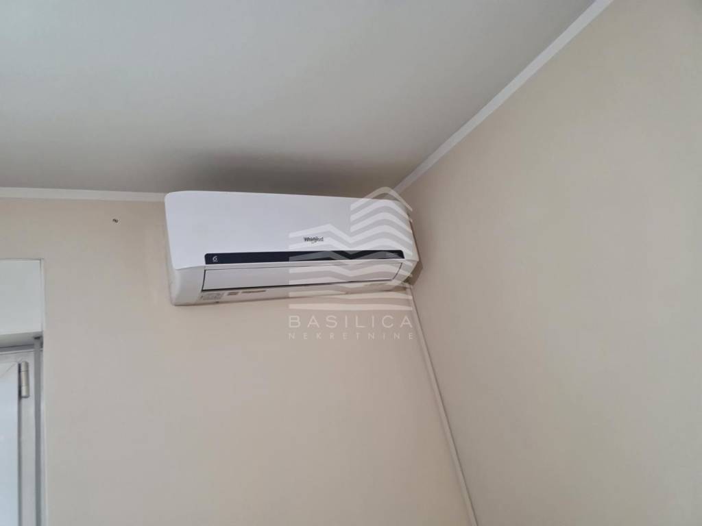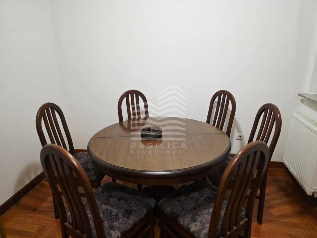 Kuhinja je opremljena i namještena kućanskim aparatima. Sastoji se od kuhinjskih elemenata izrađenih od punog drva; slavonski hrast, kao i šanka, te regala također puno bajcano drvo.U dnevnom boravku je kožna garsonjera sa ležajem puno drvo, na izvlačenje.Stol i stolice u blagovaoni su također od punog drva napravljeni (hrast masiv). Kupaona je prostrana, sa kadom.Spremišta nema, niti parkirnog mjesta (parking je javni, 2 zona i ima ga dovoljno).Vlasništvo uredno. Dostupan i useljiv odmah.