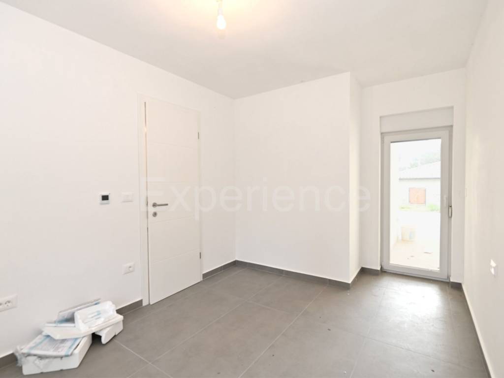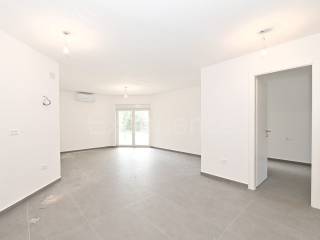 Savudrija - approx. 500 m from the beach, in a very quiet environment there is a three-room apartment for sale in a new building, with area of 64,20 m. The apartment is situated on the ground floor of a residential building with a total of 8 residential units. Contains: entrance hall, an open and bright space where are situated a living room, kitchen and dining room with access to the terrace, two bedrooms and bathroom. The apartment also has a garden (approx. 150 m), garage (12.10 m) and storage room (10 m) in the basement of the building.