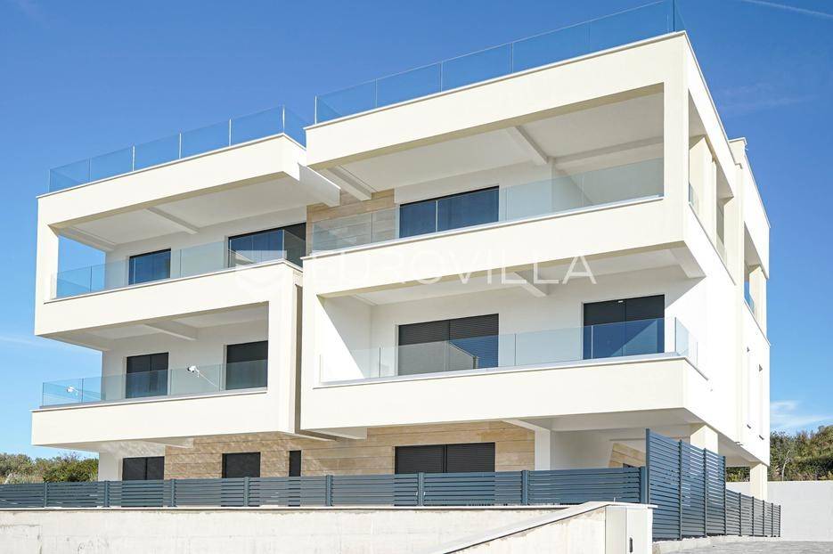 Zadar, Kožino, luksuzan dvosobni stan na prvom katu stambene zgrade, NKP 81,95 m2.Stan S2 nalazi se na 1. katu stambene zgrade, a sastoji se od ulaznog prostora, dvije spavaće sobe, kupaonice, kuhinje, blagovaonice i dnevnog boravka otvorenog koncepta površine 32,30 m2, gostinjskog wc-a/vešeraja, te loggie s koje se pruža pogled na more.Stanu pripada jedno vanjsko parkirno mjesto.U izgradnji korišteni vrhunski materijali i oprema ( dizalica toplina za grijanje i hlađenje, ALU stolarija, troslojno staklo, parket i keramika prve klase, protuprovalna vrata, klimatizirano…)Nalazi se na 250 metara udaljenosti od mora i plaže.Kožino je naselje u sastavu grada Zadra, te je dobro prometno povezano s cijelim područjem.Poznato je po šljunčanim i pješčanim plažama koje su okružene mediteranskim vegetacijom.Ova nekretnina nalazi se na izvrsnoj lokaciji te je radi položaja idealna za sve koji žele živjeti u ovom lijepom mjestu pokraj mora, ali i za sve one koji se žele baviti turizmom.Više informacija na upit.