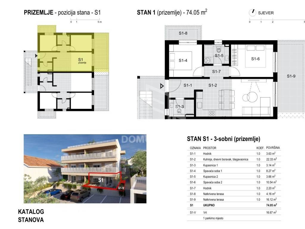 We are offering for sale a two-bedroom apartment on the ground floor of a residential building under construction in the Marina municipality, Poljica district.