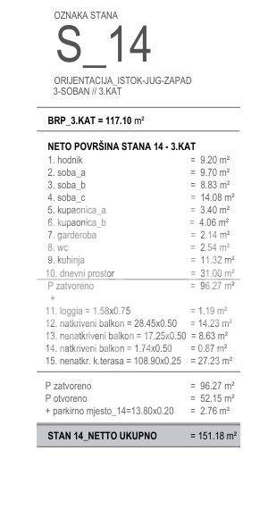 We are offering for sale a three-bedroom penthouse apartment on the third floor of a residential building under construction in Okrug Gornji. ( CODE " S14 " )