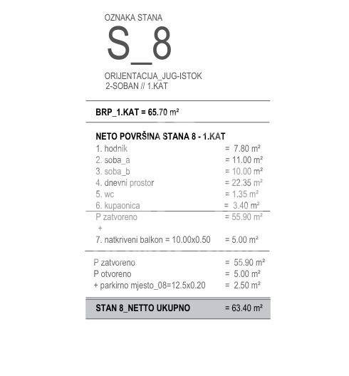 We are offering for sale a two-bedroom apartment on the first floor of a residential building under construction in Okrug Gornji. ( CODE " S8 " )