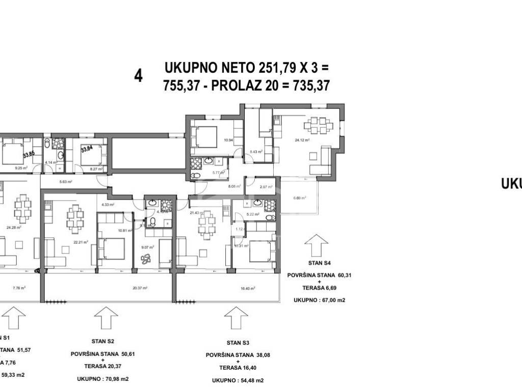 Na zemljištu se može graditi objekt od tri etaže s ukupno 12 stanova, tlocrte idejnog projekta možete pronaći u galeriji.
