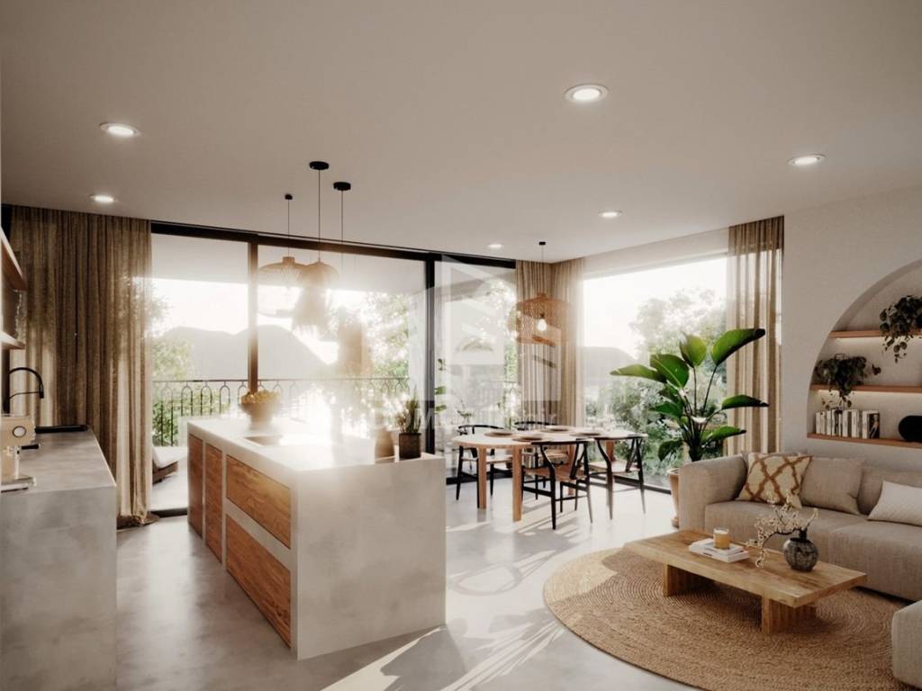 The apartment consists of a hallway, bedroom, bathroom with toilet, living room with kitchen and dining room, and a comfortable loggia.