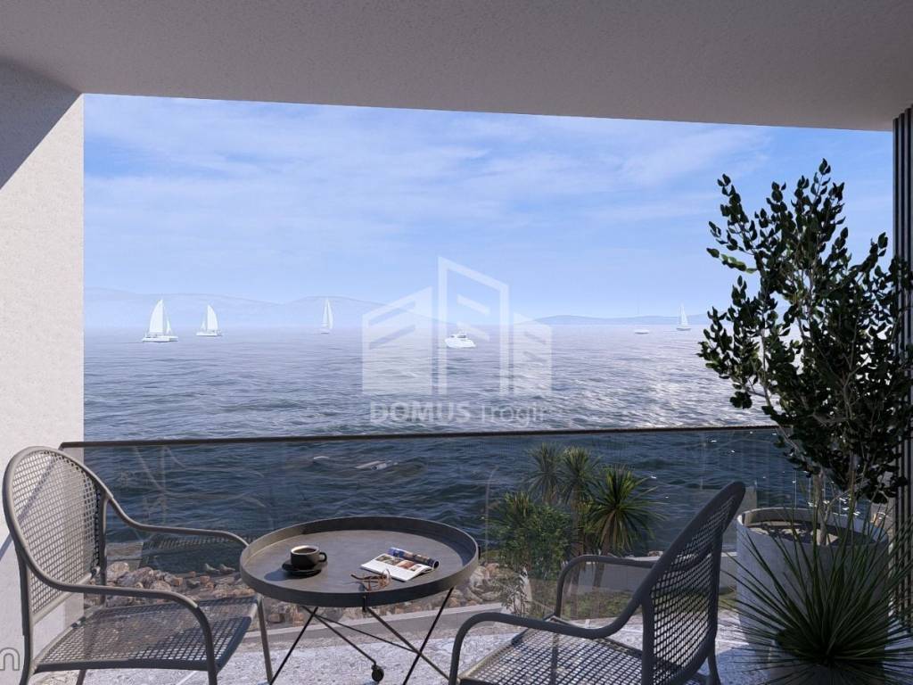 We offer for sale a three-room apartment on the ground floor of a residential building under construction in Okrug Gornji, in the first row from the sea.