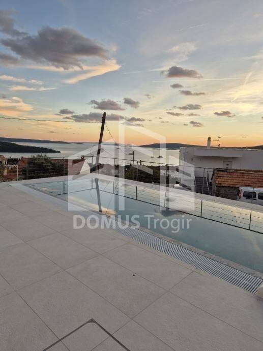For sale are two villas under construction located in Seget Donji, near Trogir, 500 meters from the sea and 100 meters above sea level. The project originally envisaged three villas with a swimming pool, one of which is already completed and occupied, while the remaining two are available for purchase in the unfinished phase or as finished properties according to the wishes of the buyers.