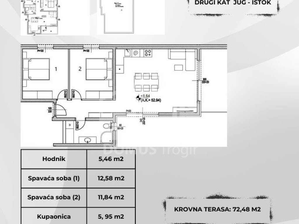 We offer for sale a two-room apartment on the second floor of a residential building under construction in Okrug Gornji.