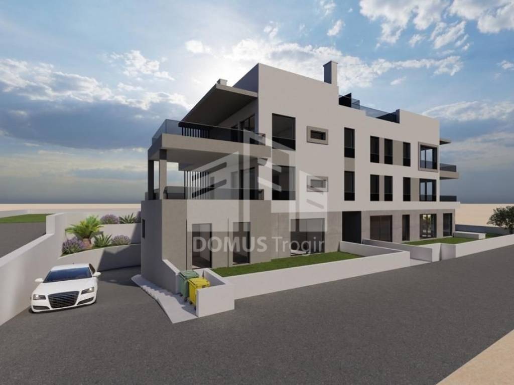 A beautiful two-bedroom apartment for sale located in Okrug Gornji on the island of Čiovo, in a luxury building that is currently under construction. The planned move-in is scheduled for the summer of 2025. This unique apartment, with a total area of 100 square meters, is located on the ground floor of the building and offers an exceptional combination of luxury and comfort, with a private garden and swimming pool, ideal for relaxing and enjoying sunny days.