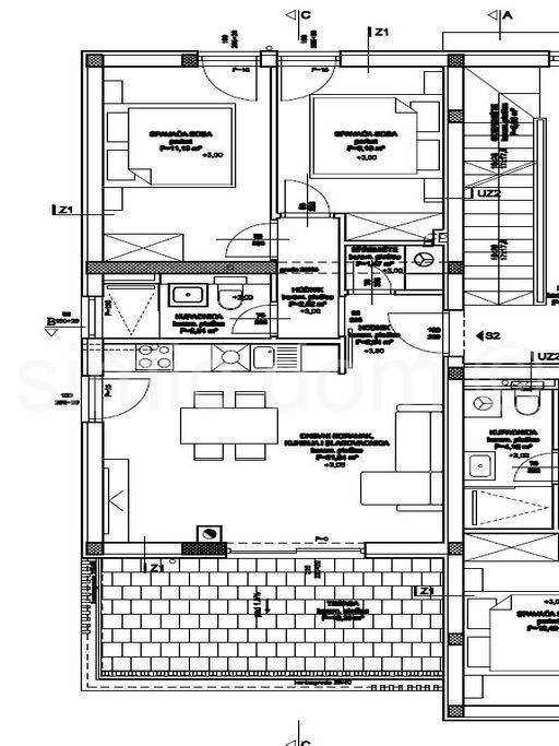 Apartments in a new building, for sale located in a prime location near the center and beach in Vodice. The beach is only 400m away, while the center is 700m away. The building is being built by a company with many years of experience in building quality residential buildings in the Sibenik area, the buyer does not pay real estate tax. The apartment marked SJ2 is placed on the first floor of the building and has a total internal area of 52.66 m2 and an additional 16.25 m2 of terrace. With the included accessories and outdoor parking space, the apartment has a net area of 64 m2. The apartment consists of a hallway, bathroom, two bedrooms, laundry room and kitchen with dining room and living area that has access to a spacious terrace. The equipment in the apartments and the building includes: fire-resistant entrance doors, white matte interior doors, PVC-GELANA exterior joinery with insulated glass, aluminium shutters, roller and side mosquito nets, electric opening of shutters on all windows, intercom - intercom, antenna system, underfloor heating in the bathroom, air conditioning with heating and cooling brand GREE or MIDEA with WI-FI (one unit on the outside, three units in the rooms, living room and kitchen one unit outside and one inside), 10mm ceramic floors, large dimensions, high-quality laminate 12 mm thick. The terraces will be enclosed by a glass fence made of tempered glass and the building will have a connection (chimney) for a solid fuel stove. A parking space is included in the price with the possibility of purchasing an additional space. The expected completion of the works is summer 2026.