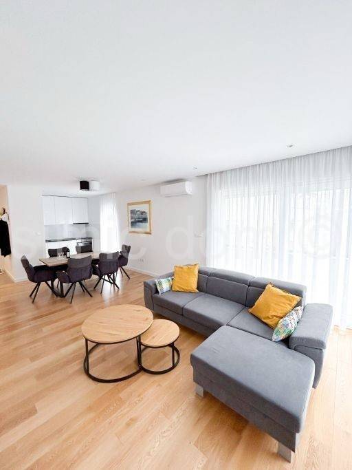 We are mediating the sale of an excellent, very spacious, modern and well-decorated property, an apartment on the ground floor of a smaller, newer building. The total usable area (interior part 71.44m2 net usable area, terrace and garden) is 96m2, and includes two bedrooms, two bathrooms and a very impressive living room with kitchen and a spacious terrace leading to the garden (possibility of installing a jacuzzi/swimming pool). We would like to specially mention that the apartment is being sold fully equipped with modern and functional furniture, and there are also household appliances from top manufacturers. The price also includes an outdoor parking space, which is an additional advantage. The apartment offers plenty of daylight and is an excellent opportunity for a quiet family life (close to all amenities such as kindergartens, schools, shops, restaurants), while the proximity to the sea (approximately 5 minutes to the sea) guarantees very good tourist usability. Ownership is in order.