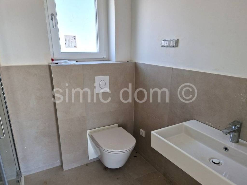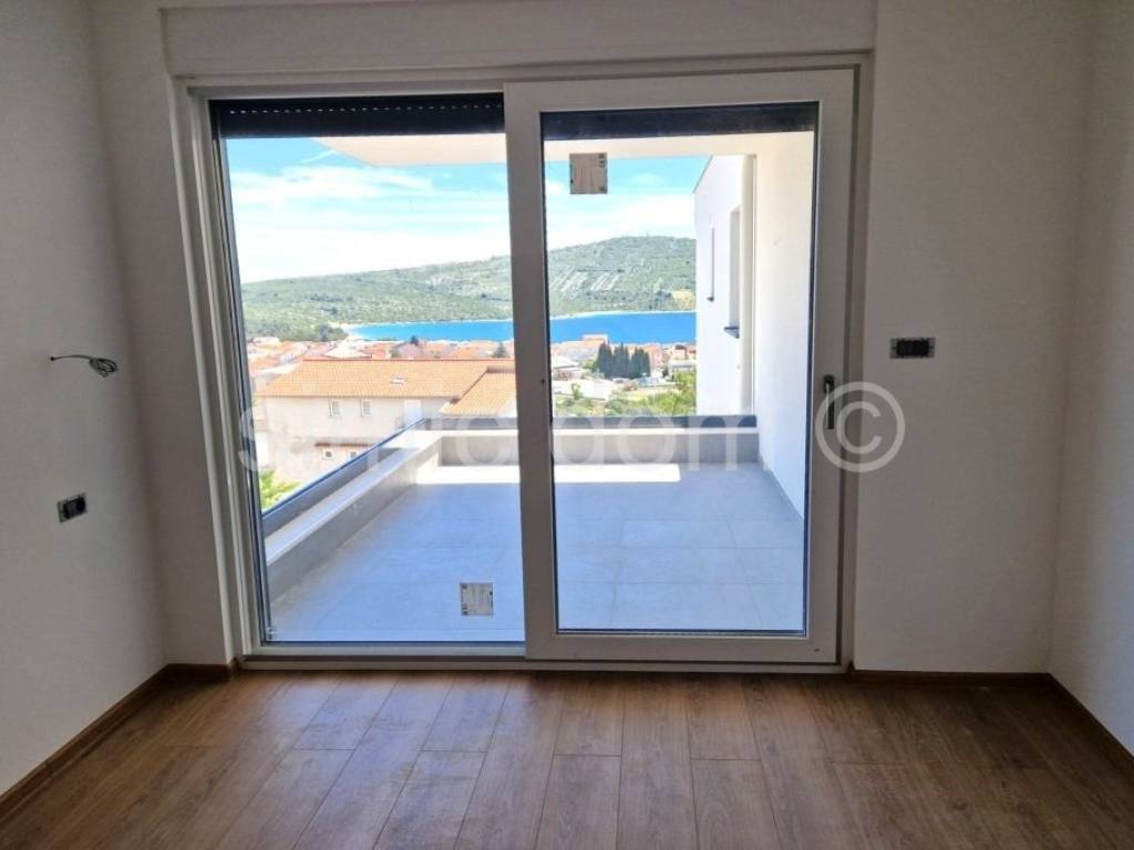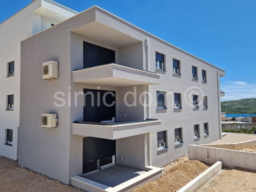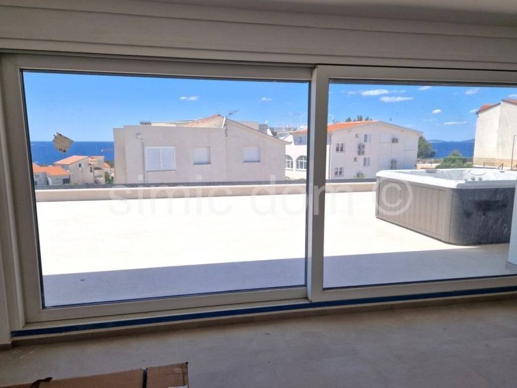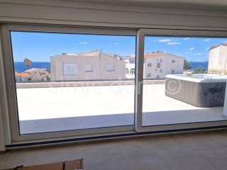 Apartments for sale in an exceptionally high-quality new building of a renowned company. The building is located in a quiet street, yet only 350m from the pebble beach and the center of Primosten. Apartment S13 is placed on the third floor of the building, has west-orientation and has a total net area of 101.20 m2, and it also has one outdoor parking space included in the price. The apartment consists of a spacious hallway, bathroom, toilet, storage room, two bedrooms, one of which has an exit to the loggia with a sea view, kitchen and living room with dining room from which there is an exit to the terrace with a phenomenal sea view and a built-in jacuzzi. As part of the common part of the garden, all owners will have the opportunity to enjoy the garden with a barbecue. The building is designed to meet energy class A with a facade system made of 15cm thick EPS polystyrene, while the partition walls have increased sound insulation. There is also REHAU Synego PVC joinery, three-layer IZO glass, blinds with an electric motor and mosquito nets in the box of the window blinds. Entrance door to the apartment in anti-burglary and fire-resistant design. Class I ceramic tiles from Italian manufacturers in the bathroom, kitchen, living room, hallway and loggia. High-quality laminate class 33, 12 mm thick in bedrooms. TV and internet sockets are provided in all rooms. All rooms are equipped with PANASONIC / inverter air conditioners / Wi-Fi mode with a 10-year warranty on the entire air conditioning system and a digital thermostat. Planned completion and occupancy in the summer of 2025. Buyers are exempt from real estate sales tax.