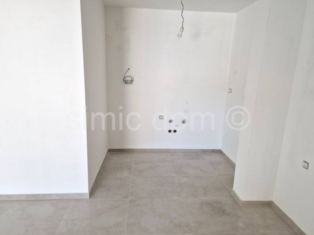 Apartments for sale in an exceptionally high-quality new building of a renowned company. The building is located in a quiet street, yet only 350m from the pebble beach and the center of Primosten. Apartment S5 is placed on the first floor of the building, has west-orientation and has a total area of 67.81 m2, and it also has one outdoor parking space included in the price. The apartment consists of a spacious hallway, bathroom, two bedrooms, kitchen and living room with dining room, from which there is access to a terrace with a sea view. The building was designed to meet energy class A with a facade system made of 15cm thick EPS polystyrene, while the partition walls have increased sound insulation. There is also REHAU Synego PVC joinery, three-layer IZO glass, electric motor-driven roller shutters and roller mosquito nets. Entrance door to the apartment in burglar-proof and fire-resistant design, first-class ceramic tiles from Italian manufacturers (in the bathroom, kitchen, living room, hallway and loggia), high-quality laminate (class 33, 12mm thick) in the bedrooms. All rooms have TV and internet sockets. All rooms are equipped with PANASONIC / inverter air conditioners / Wi-Fi mode with a 10-year warranty on the entire air conditioning system, digital thermostat. Planned completion and move-in summer 2025. Buyers are exempt from real estate transfer tax.