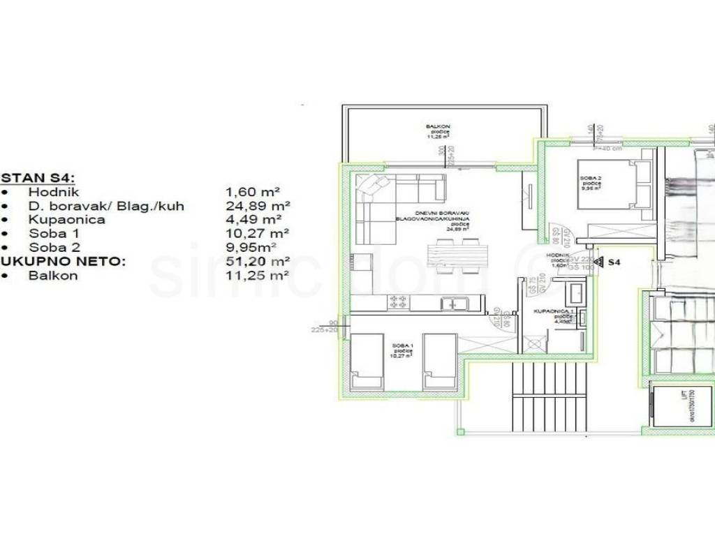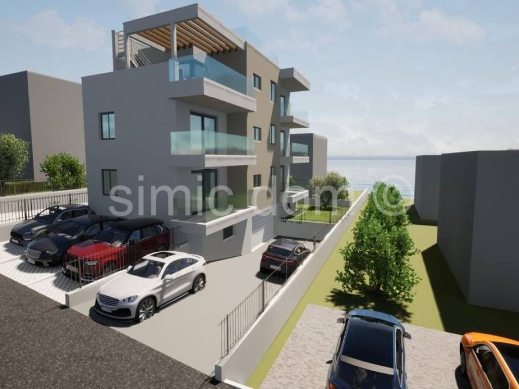 For sale is an excellent apartment located in a smaller building, in a quiet street just 60m from the pebble beach on Ciovo. The apartment is located on the first floor of a building with an elevator, is southwest-facing and has a total floor area of 62.45 m2, of which 51.20 m2 is interior. A great additional advantage is that the apartment has a garage space and an outdoor parking space, all included in the price. The apartment consists of a hallway, two bedrooms, a bathroom, and a spacious kitchen with a dining room and a living area that has access to a terrace. The building will be built and equipped to high standards; exterior carpentry with mosquito nets, anti-burglary and fire-resistant entrance doors, electric roller shutters, underfloor heating, modern bathroom fixtures. Expected move-in is the end of 2026. This top location a few steps from the beach and all amenities, with a phenomenal view guarantees a top-notch vacation, which will only increase the value of this property in the future.