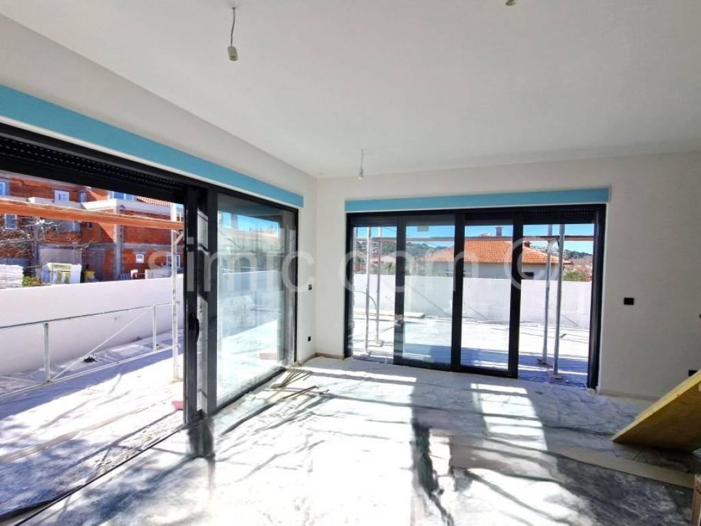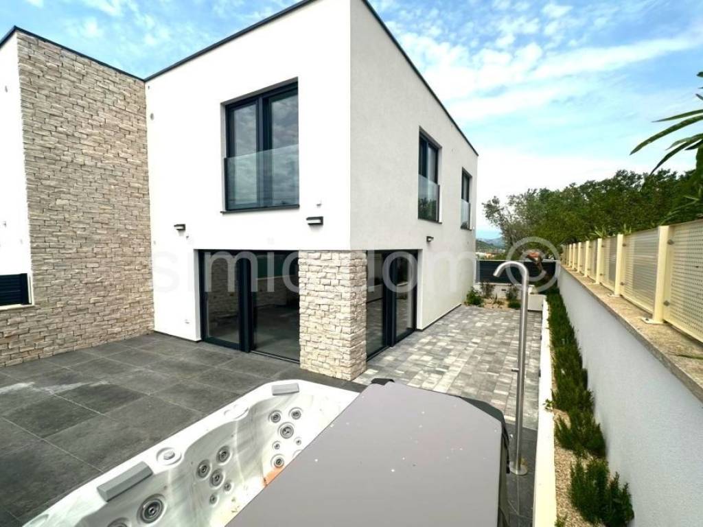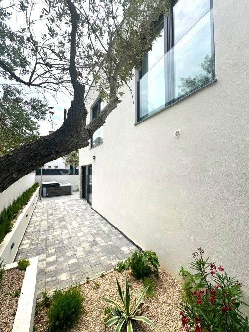 We mediate in the sale of a semi-detached house in a new building in Murter, located in the very center of the town, yet in a very quiet location. It is only a 5-minute walk from the beach and all other facilities and has a wonderful view of the town and the sea. The house consists of two floors, with a total net living area of 117.26 m2. There is a bathroom with toilet and an open concept kitchen, dining room and living room on the ground floor. The staircase leads to the first floor, which consists of a bathroom with toilet, 2 bedrooms and a master bedroom with its own bathroom and a toilet. The house has 2 parking spaces, and there is also a swimming pool in the yard. Thanks to the location of the house, as well as the large windows, the whole house has plenty of natural light throughout the day, and thanks to good insulation, heating or cooling the space will be quick and easy. The house is equipped with high-quality materials and various modern and technologically advanced features, which ensures longevity and a pleasant stay. The house is located in a quiet street close to all facilities, therefore it offers all the advantages of staying on the island of Murter. The house is sold fully furnished, and it is also possible to buy a variation without furniture at a lower price. The expected completion of construction is in the spring of 2025.