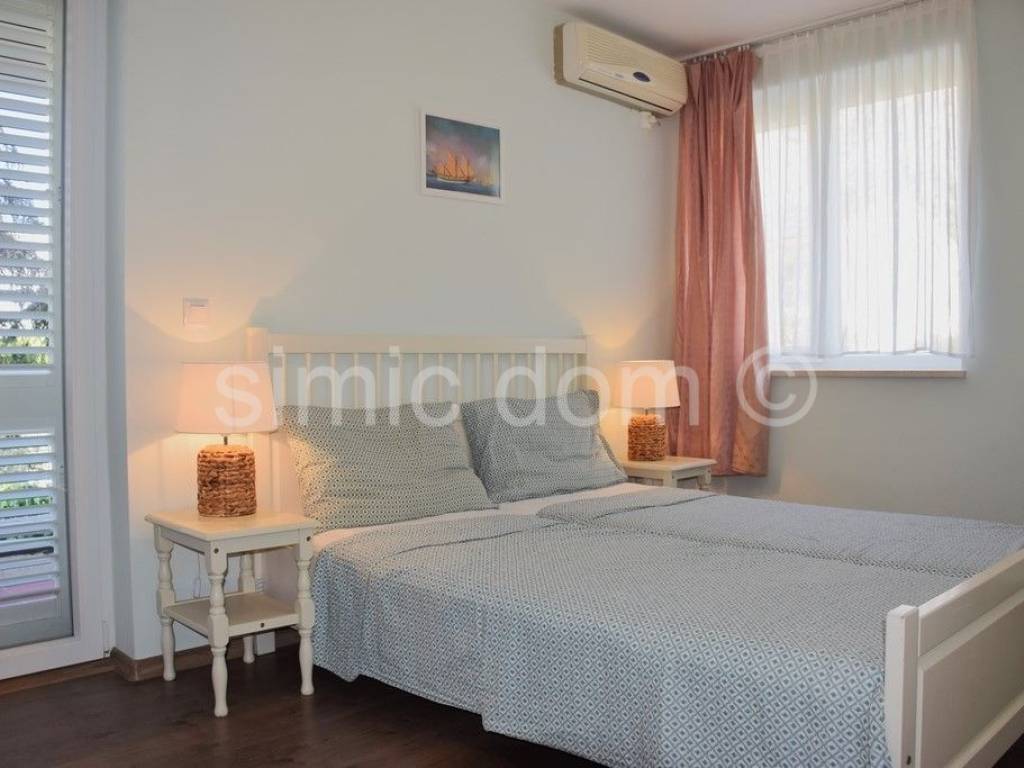 We mediate the sale of an excellent investment opportunity - a small boarding house that does excellent business and boasts a high number of overnight stays. The house is placed on a plot of 510m2, while the property itself has an area of 520m2. It covers the basement, ground floor and two upper floors. In total, there are two apartments (one with two bedrooms, the other with one), eight rooms and eight bathrooms. All accommodation units have very charming balconies with beautiful views of the sea, mountains and the surrounding area. In the basement of the house there is an excellent space of 100 m2, ideal as a kitchen for the business of the guesthouse or it can be converted into a fitness area, a lounge... Also, the house has a very spacious garage and it is surrounded by a carefully maintained garden with carefully selected Mediterranean plants. It is important to emphasize that the house was thoroughly renovated a few months ago (new installations, floors, carpentry), and it is being sold fully furnished and equipped perfect for continuing the rental business. The location is in the immediate vicinity of the famous beaches of this region, while facilities such as shops and restaurants are also very close. Ownership in order.